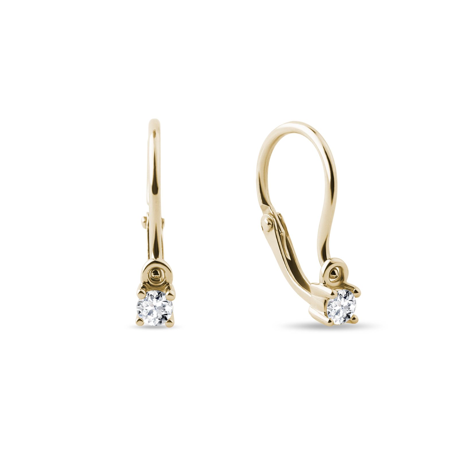 Decentné náušnice vyrobené zo žltého 14k zlata. Náušničky sú ozdobené čírymi briliantmi.