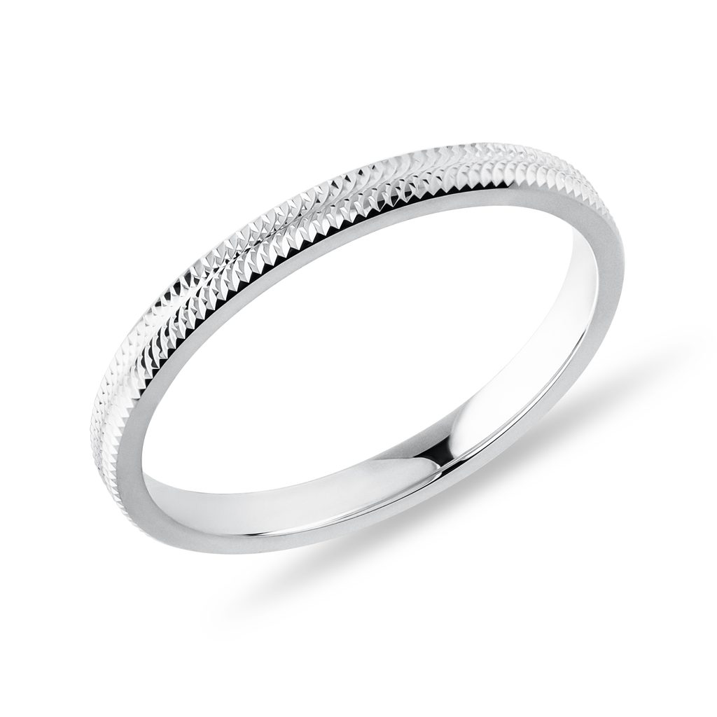 Dámsky prsteň s jemným gravírovaním v bielom zlate
