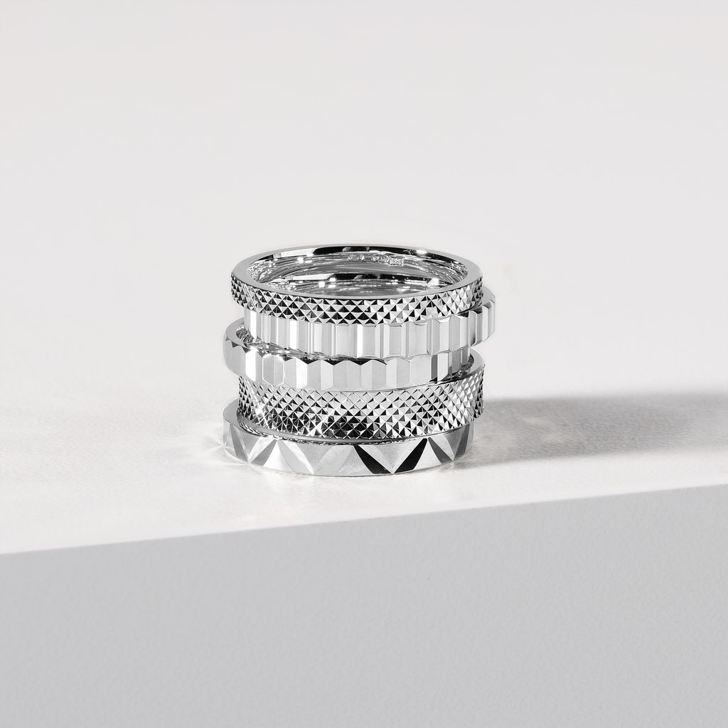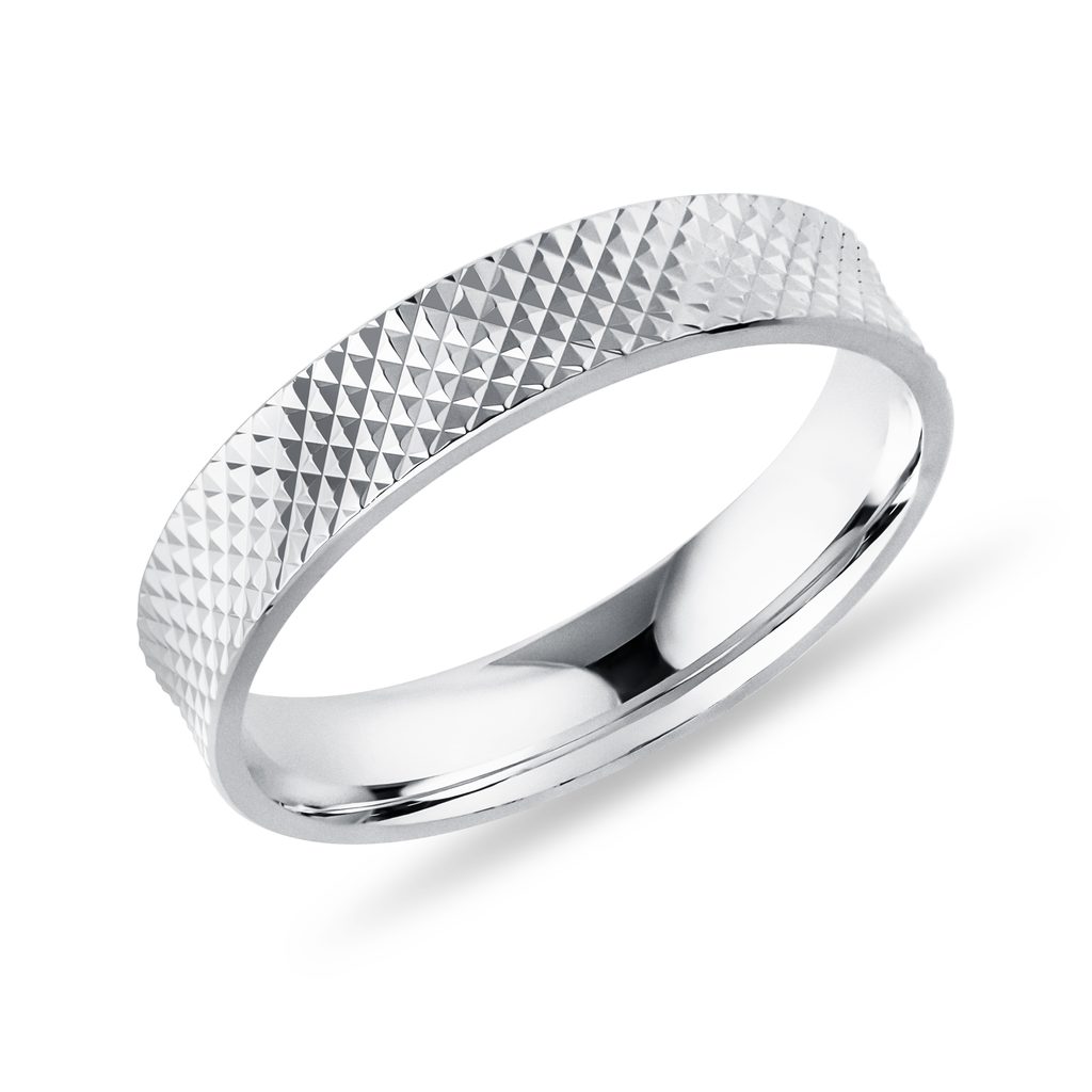 Dámsky prsteň so šírkou 4 mm z bieleho 14k zlata zdobí jemný vzor, ktorý podčiarkuje čistý dizajn a kvalitu spracovania. Má ľahko zaoblený profil, prispôsobený tak, aby na prste dobre sedel a bol pohodlný pri každodennom nosení. Ľahko sa kombinuje s ďalšími prsteňmi a osloví ženy, ktoré majú rady klasiku s nenápadnou originalitou.