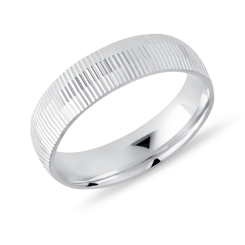 Štýlový dámsky prsteň s pravidelným gravírovaním z bieleho 14-karátového zlata so šírkou 5 mm patrí medzi výraznejšie šperky a vynikne ako pri samostatnom nosení, tak v kombinácii s ďalšími prsteňmi, najmä s modelmi v štýle eternity. Krásne sa vyníma nielen na prstenníku, ale aj na prostredníku alebo ukazováku a funguje ako výrazný statement kúsok.