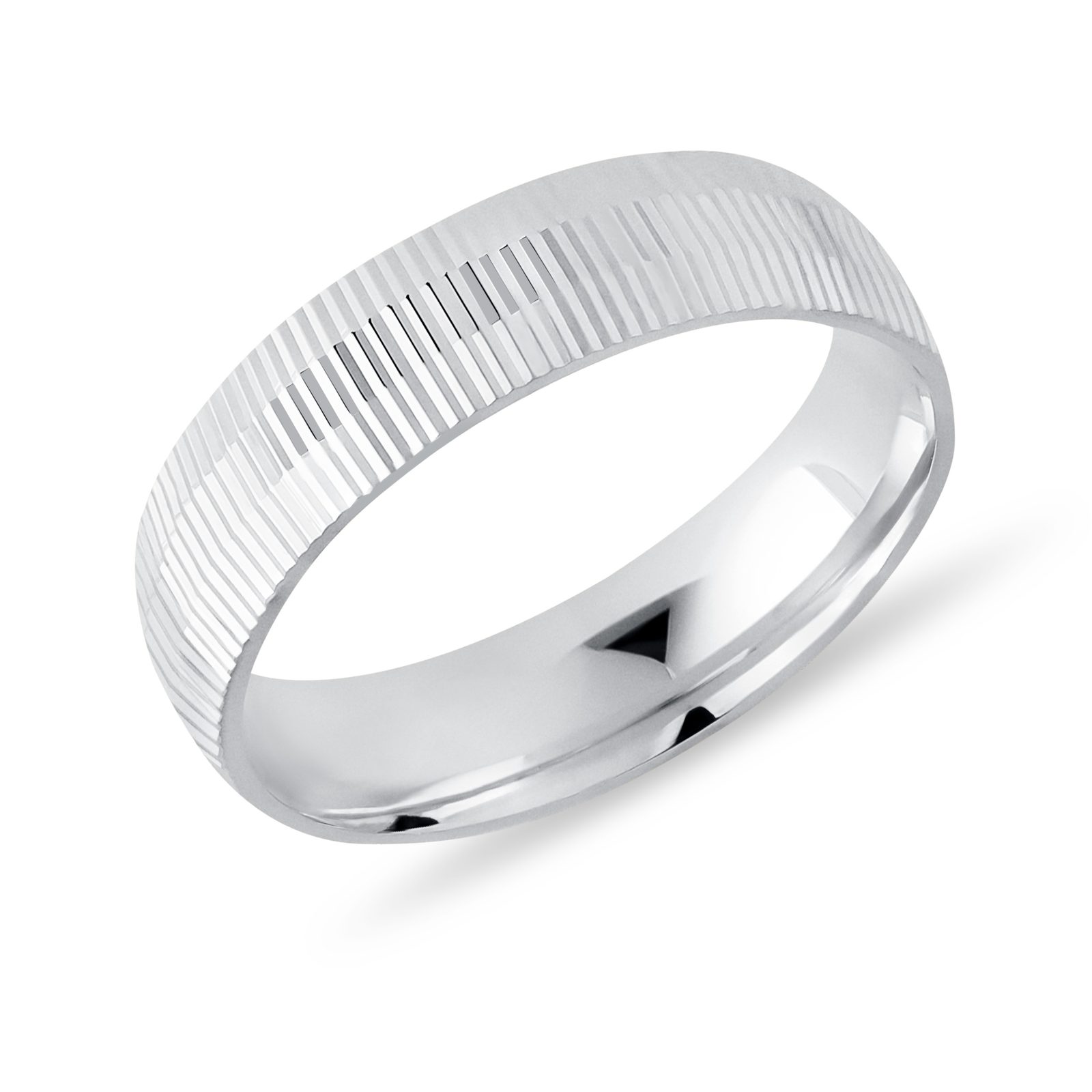 Moderný dámsky prsteň s vrúbkovaním v bielom 14k zlate
