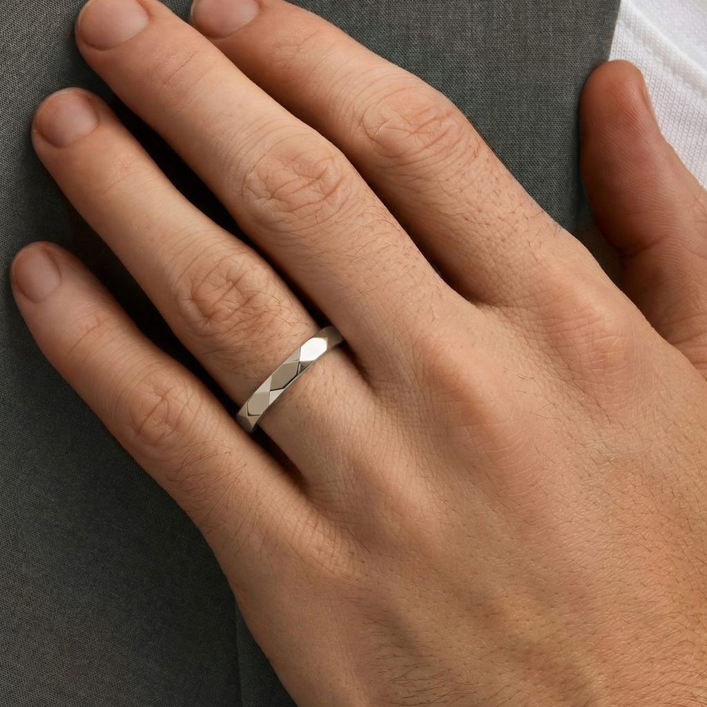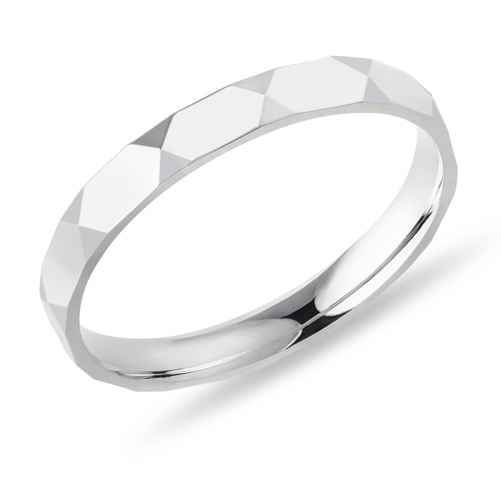 Pánska svadobná obrúčka z bieleho zlata s fazetami