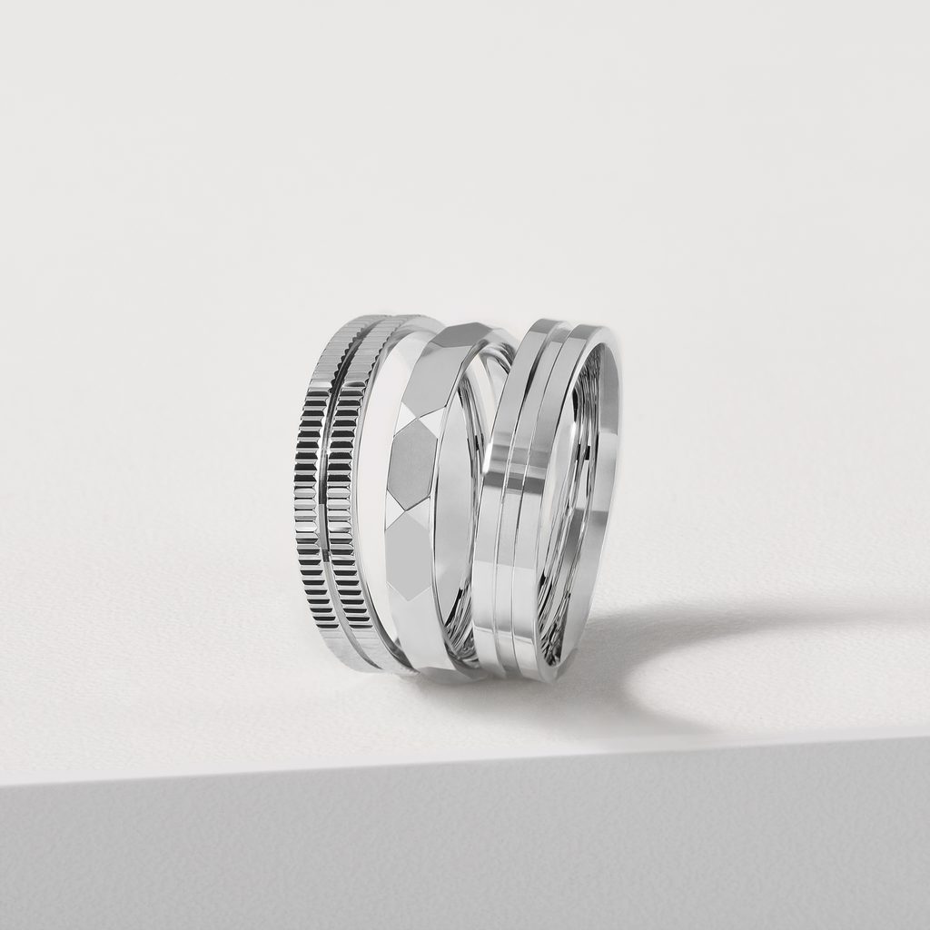 Pánsky prsteň z bieleho 14-karátového zlata so šírkou 3 mm má jemne štruktúrovaný povrch s geometrickým vzorom, ktorý mu dodáva osobitý vzhľad a odlišuje ho od klasických hladkých modelov. Hodí sa pre mužov, ktorí hľadajú niečo tradičné, ale s ľahkým prvkom originality.