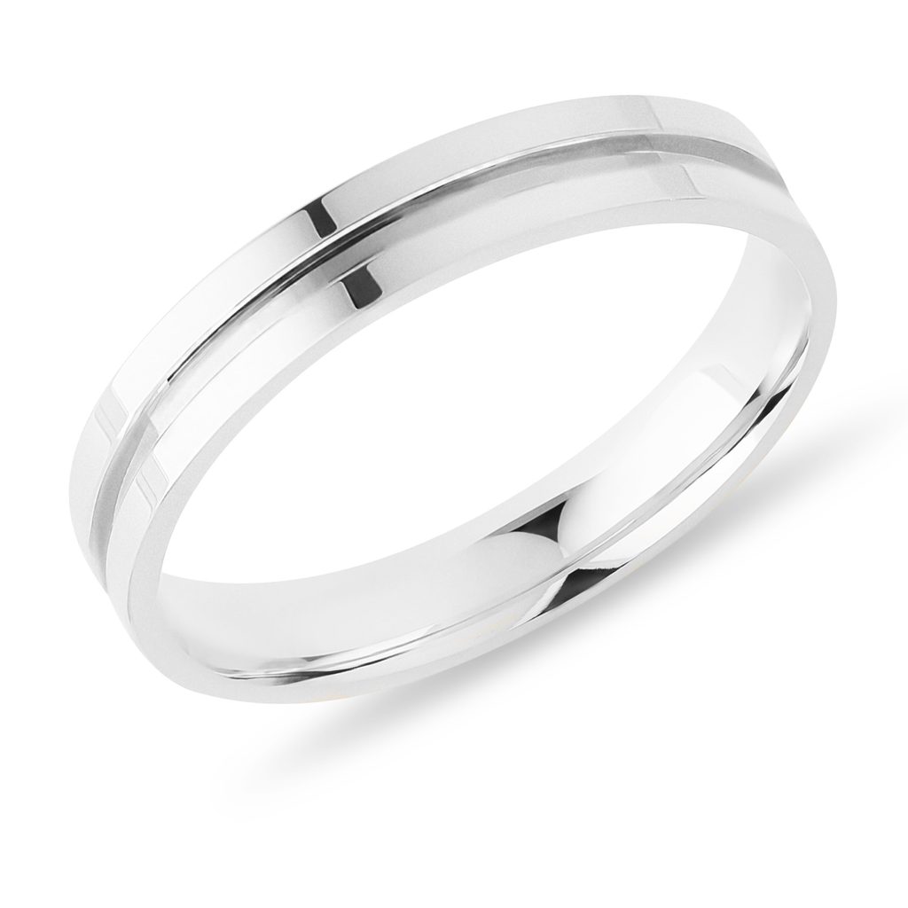Pánsky prsteň s rytou drážkou v bielom zlate