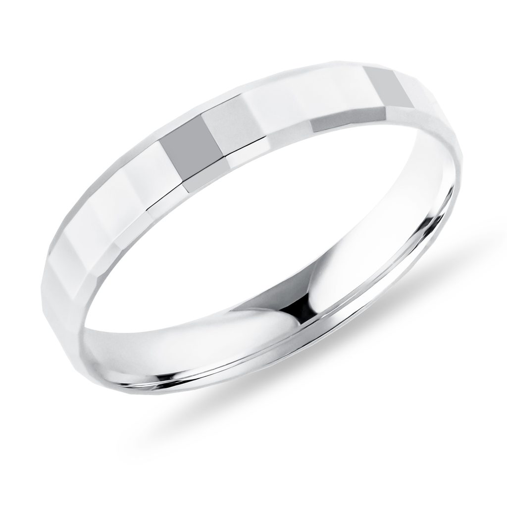 Pánsky prsteň z bieleho 14-karátového zlata so šírkou 4 mm zaujme precízne vybrúsenými hranami, ktoré vytvárajú jemne členený geometrický vzhľad. Lesklé plôšky podčiarkujú precízne spracovanie a dodávajú prsteňu čistý, moderný charakter. Vyvážené proporcie a premyslený profil zaisťujú pohodlné nosenie, zatiaľ čo nadčasový dizajn osloví mužov, ktorí preferujú jednoduchý štýl s decentným detailom.