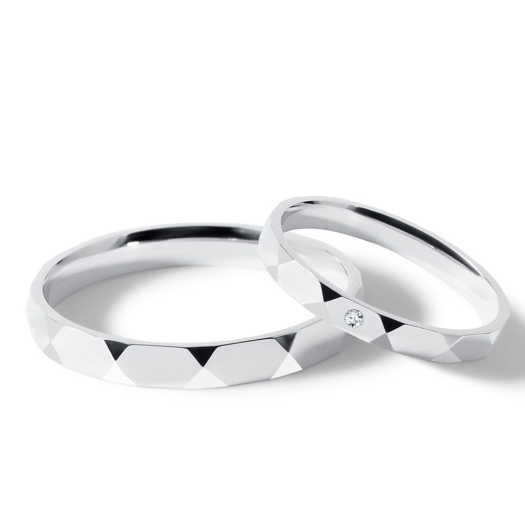 Súprava svadobných obrúčok s fazetami v bielom zlate
