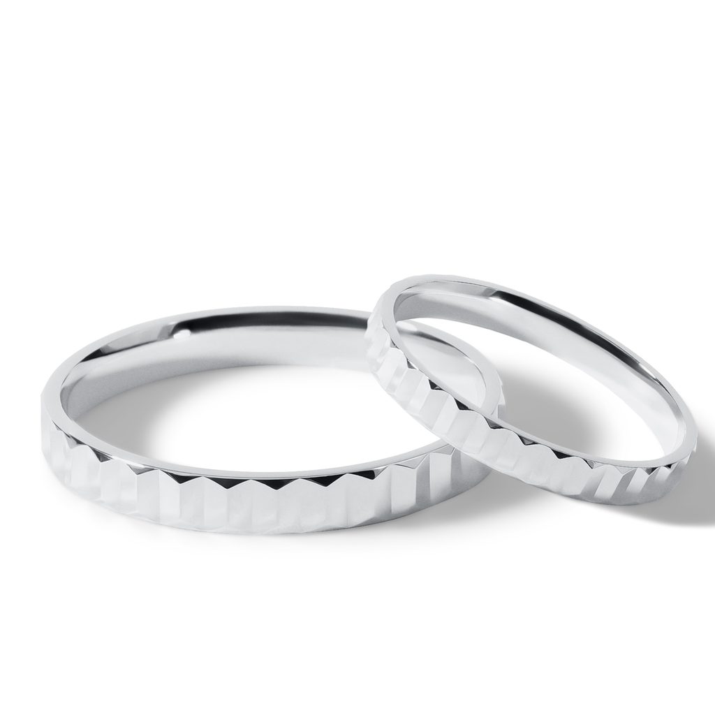 Svadobné obrúčky z bieleho zlata s plisé vzorom